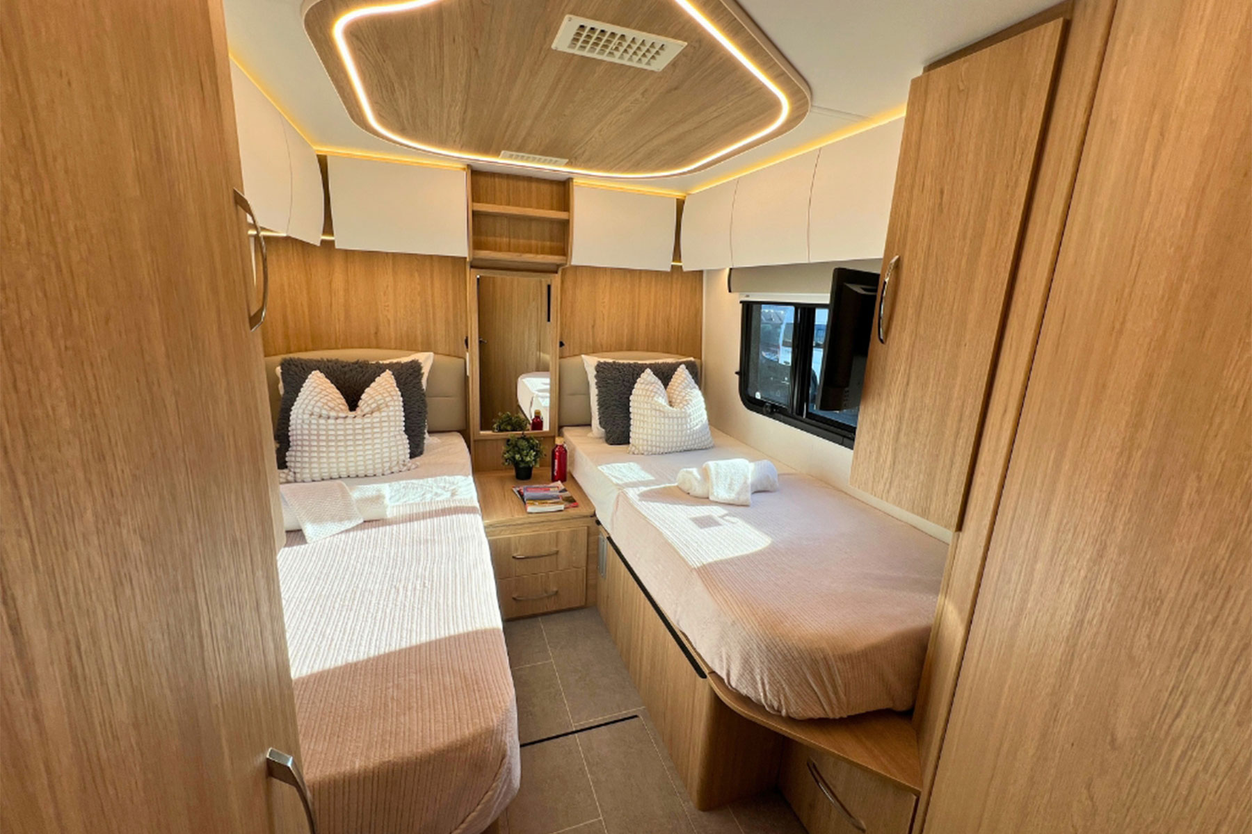 Premium, komfortabel, effizient. Das Class B+ Premium – überzeugt mit Mercedes-Benz Diesel-Chassis, durchdachtem Innenraum und niedrigeren Verbrauchskosten. Viel Platz zum Wohlfühlen, zwei Twin-Betten, die sich zu einem King-Bett umwandeln lassen, und ein hochwertiges Interieur. Ideal für Paare, die Wert auf komfortables Reisen legen.