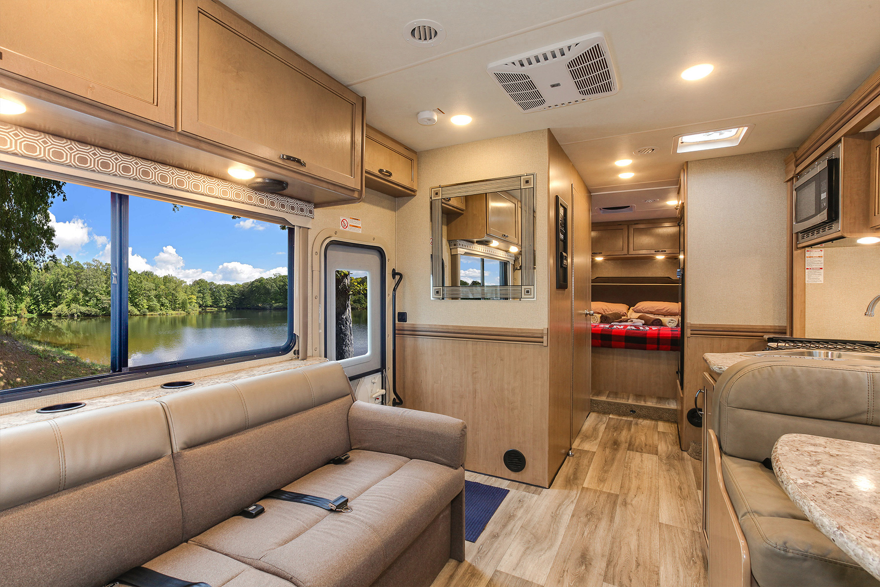 Ist das noch ein Wohmobil oder schon ein Ferienhaus? Der C-XLarge Slide toppt alles in Sachen Länge, Austattung und Platzangebot. Es gibt ein separates Schlafzimmer im hinteren Bereichs des Wohnmobils, ein Doppelbett im Alkoven, eine Couch und eine umbaubare Sitzecke. Das ergibt Schlafplätze für bis zu sechs Personen. Perfekt für größere Familien.