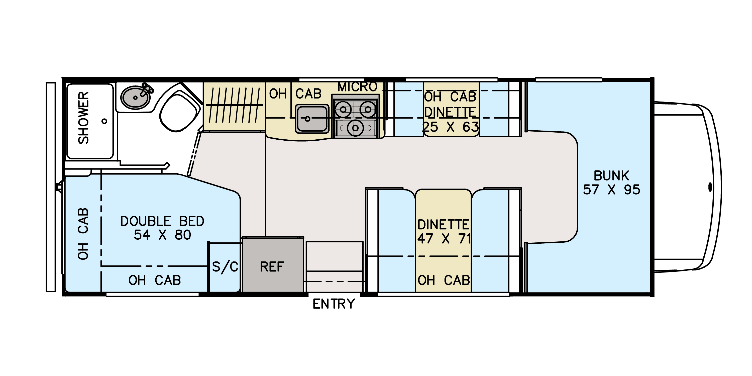 Technische Daten:Benzin (Tank: 208 l), V10-Motor, Verbrauch: ca. 23-29 Liter/100km, Automatik-Getriebe, Tempomat, Servolenkung, ABS, Propantank (87 l), Frischwassertank (189 l), Abwassertanks (grau: 105 l / schwarz: 83 l)