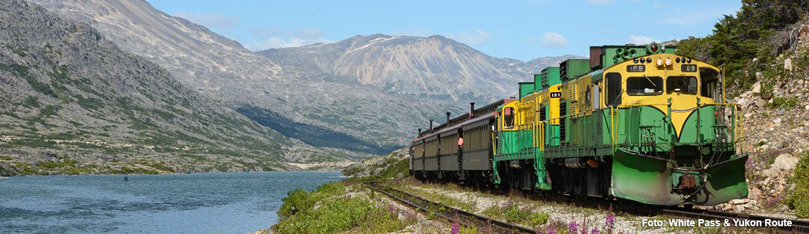 Im Zug der Goldgräber ab Fraser über den White Pass bis nach Skagway und per Bus zurück nach Whitehorse.
